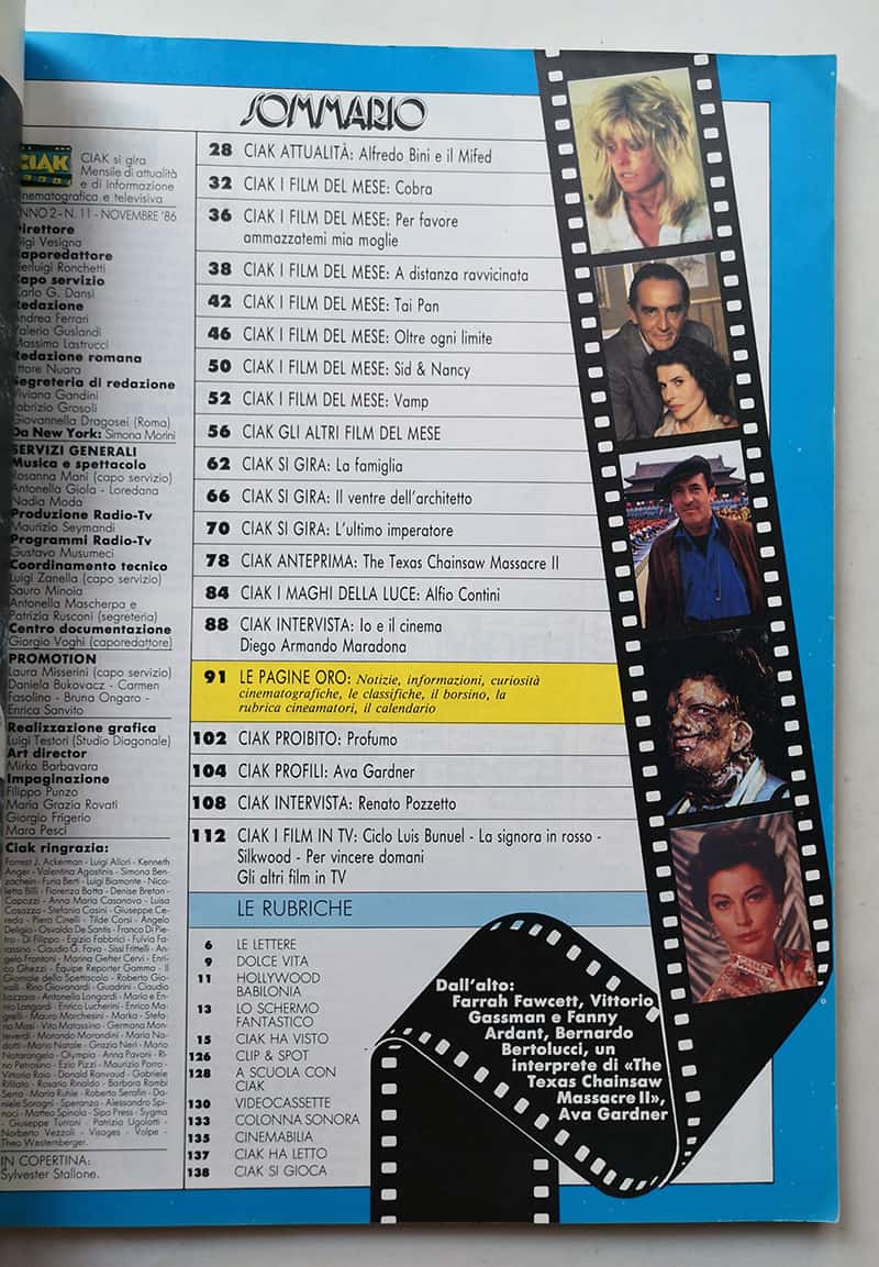 CIAK n° 11 – 1986 Sylvester Stallone VITTORIO GASSMAN Renato Pozzetto