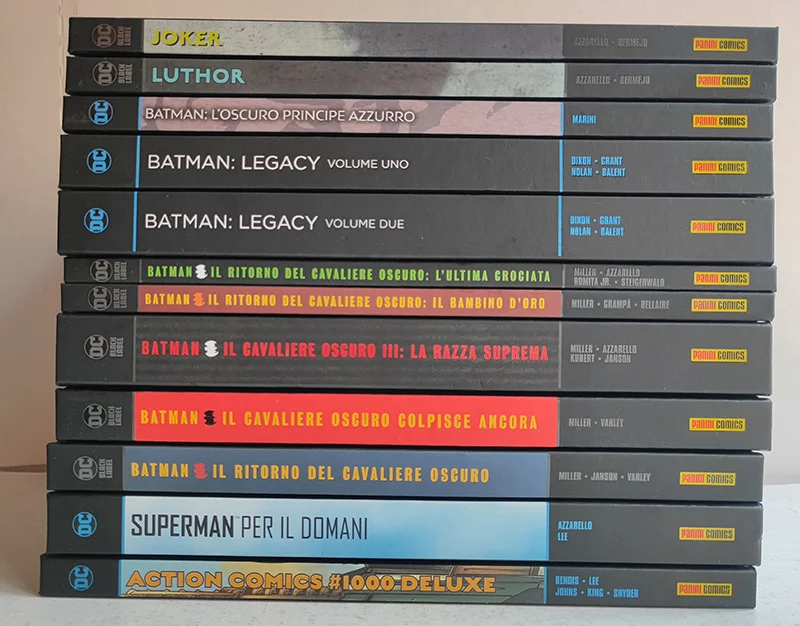 DC Library DC Black Label | 1 Action Comics #1000, 3 Superman Per il Domani, 19 Batman L'Oscuro Principe Azzurro, 46 e 54 Batman Legacy 1/2, 1 Batman Il Ritorno del Cavaliere Oscuro, 4 Joker, 5 Batman Il Cavaliere Oscuro colpisce ancora, 8 Batman Il Ritorno del Cavaliere Oscuro L'Ultima Crociata, 11 Batman Il Ritorno del Cavaliere Oscuro la Razza Suprema, 16 Batman Il ritorno del Cavaliere Oscuro Il Bambino d'Oro, 24 Luthor |