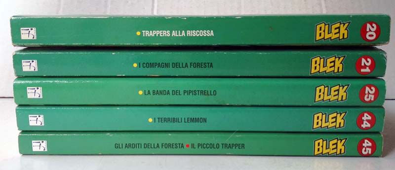 Note [Notes]: L’avventura di Blek Macigno di questo numero è stata realizzata da Giovanni Sinchetto, Dario Guzzon e Pietro Sartoris e pubblicata per la prima volta su Il Grande Blek della Casa Editrice Dardo, Collana Freccia, venticinquesima serie, dal n. 1 (31 maggio 1964) al n. 21 (10 ottobre 1964).