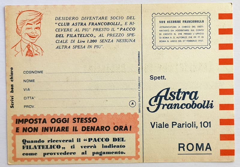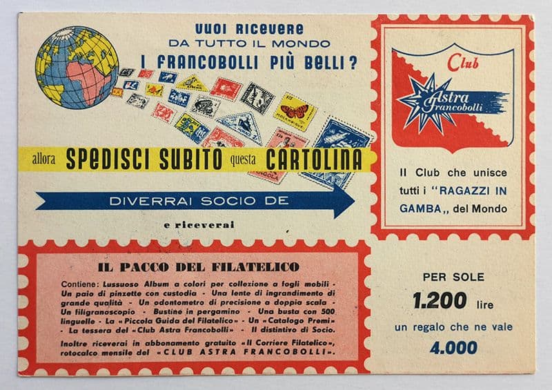 Inserto sciolto CARTOLINA ASTRA (allegato TOPOLINO N 176) Mondadori 1957