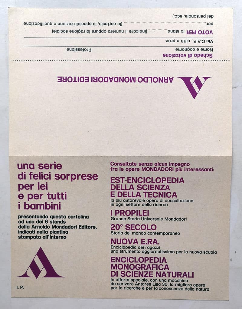 Inserto GADGET VOLANTE allegato TOPOLINO N 855 CARTOLINA viola FIERA DI MILANO