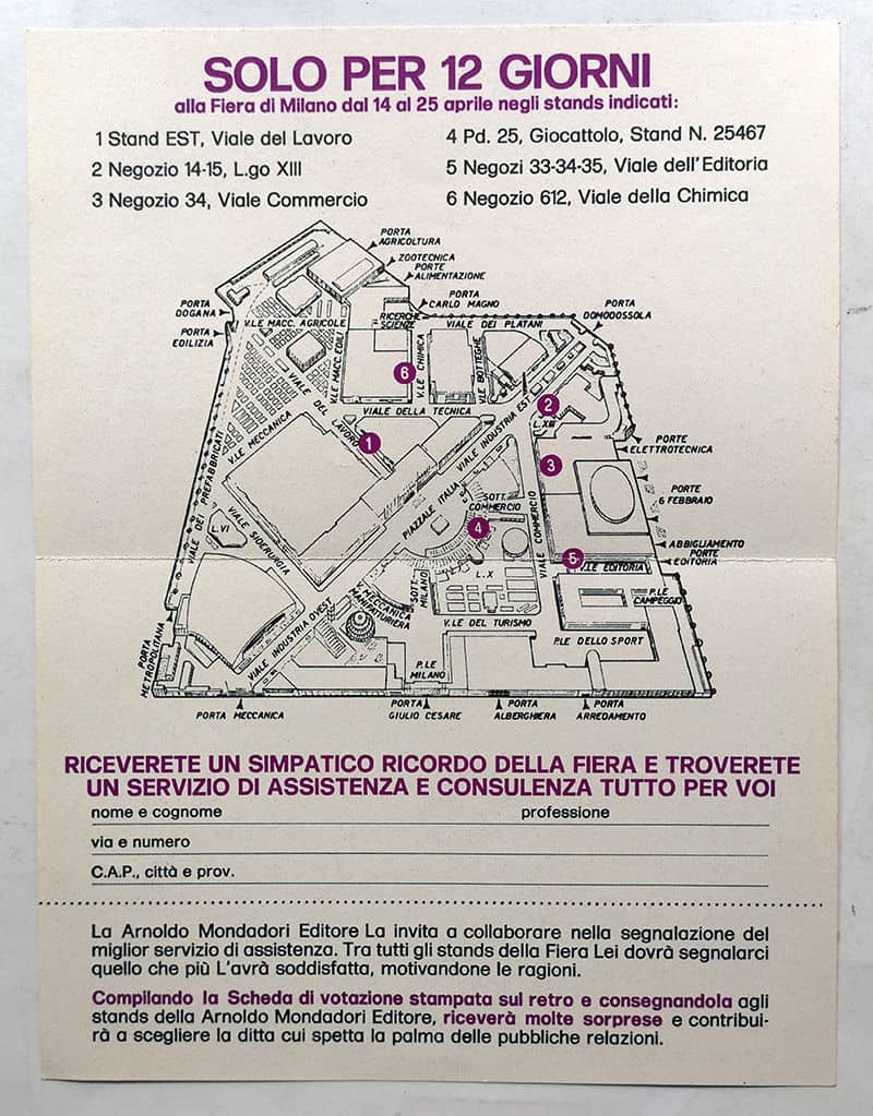 Inserto GADGET VOLANTE regionale allegato TOPOLINO N 855 CARTOLINA viola FIERA DI MILANO