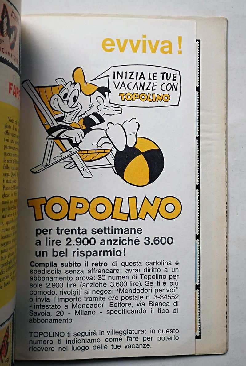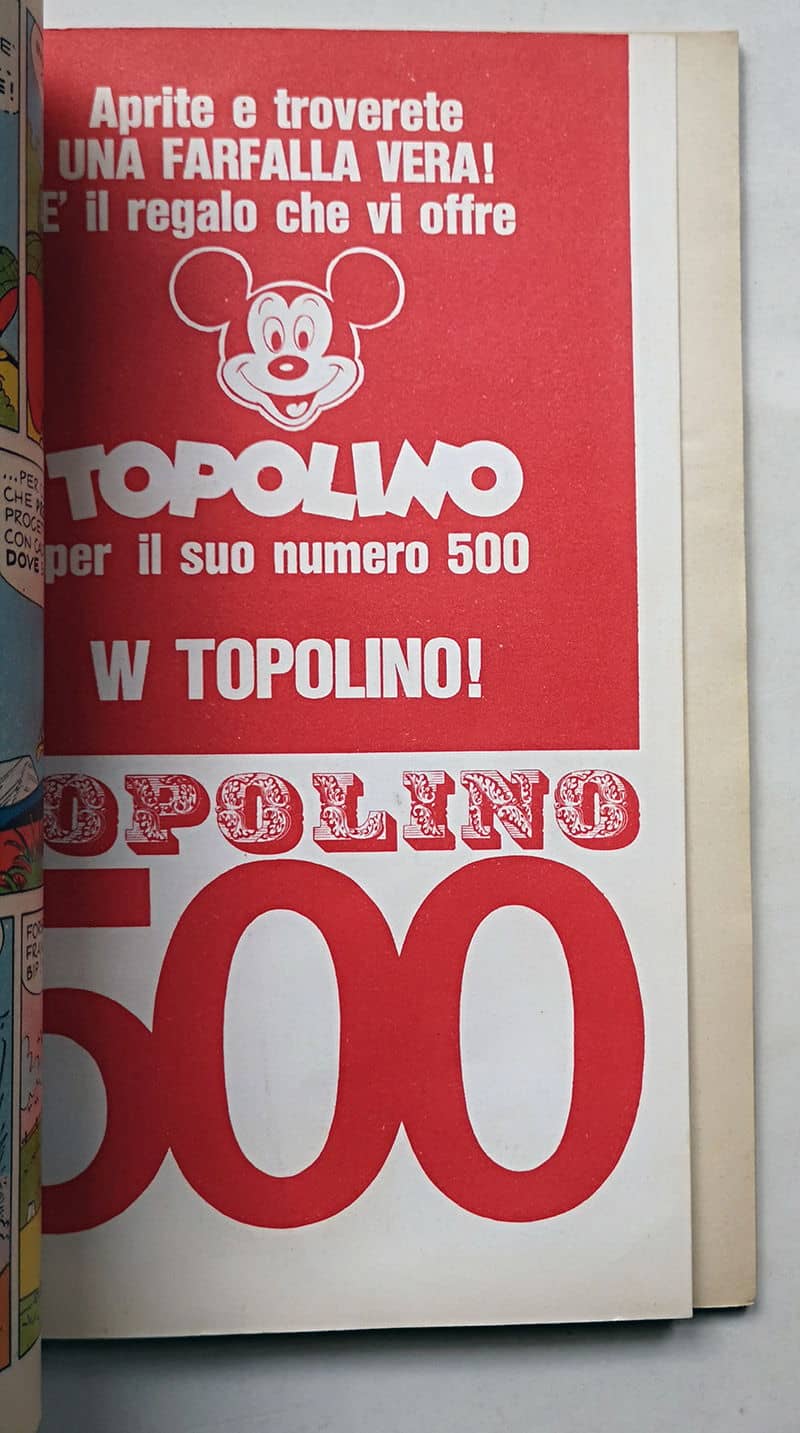 TOPOLINO LIBRETTO n 500 Mondadori 1965 con cartoncino senza farfalla FARFALLA + BOLLINO e cartolina abbonati